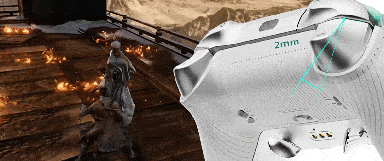 一档默认全行程,适用赛车类游戏二档默认2mm短行程,适用动作类游戏三档默认0.1mm超短行程,适用FPS游戏